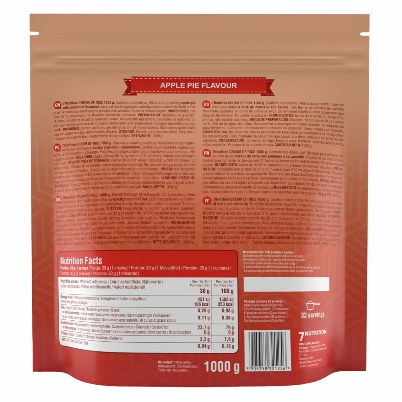 7Nutrition Cream of Rice Porridge, Apple Pie - 1 kg