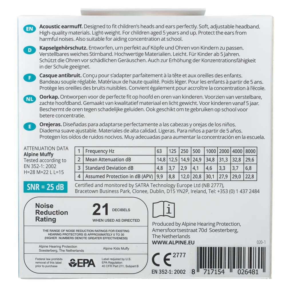 Alpine Muffy Kids is designed to protect the extra sensitive hearing of children aged 5 to 16 against damaging noise. The earmuffs can be used in noisy environments, such as parties, parades, fireworks shows, concerts, and car and motorcycle races. The small earmuffs for children also provide noise reduction to improve concentration, for instance in noisy classrooms. The headband is adjustable and features a soft lining. Alpine Muffy Kids earmuffs are available in five new, trendy colours. The outer layer of the colourful earmuffs is made from plastic and therefore easy to clean. The earmuffs can be folded, so they are easy to take along. Make your child feel comfortable and safe.