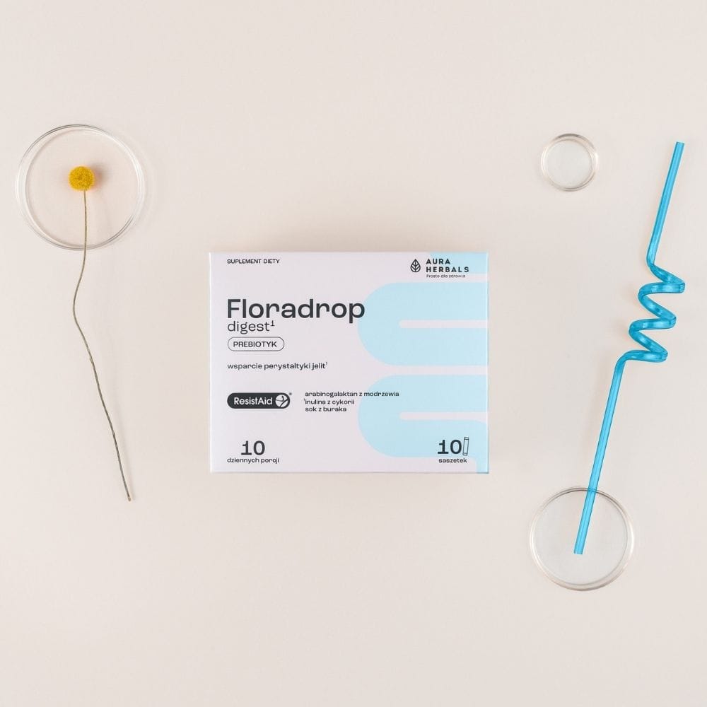 Aura Herbals Floradrop digest is a powdered dietary supplement in convenient sachets. A natural source of prebiotics. Contains branded American larch extract (Larix laricina) standardised to 85% arabinogalactan (ResistAid®). With added chicory inulin and beetroot juice.