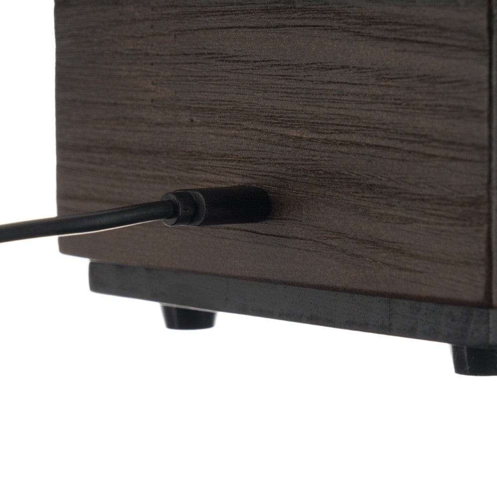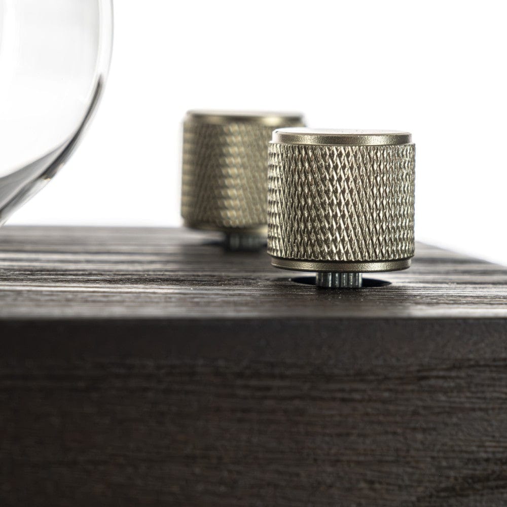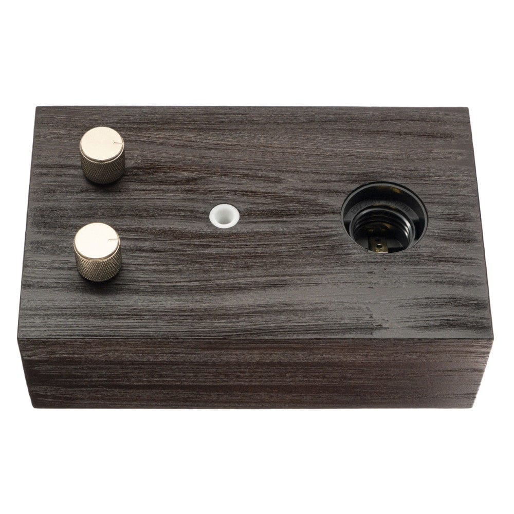 - A pine wood base, glass bottle, bulb and metal knobs – durability and elegance in one.