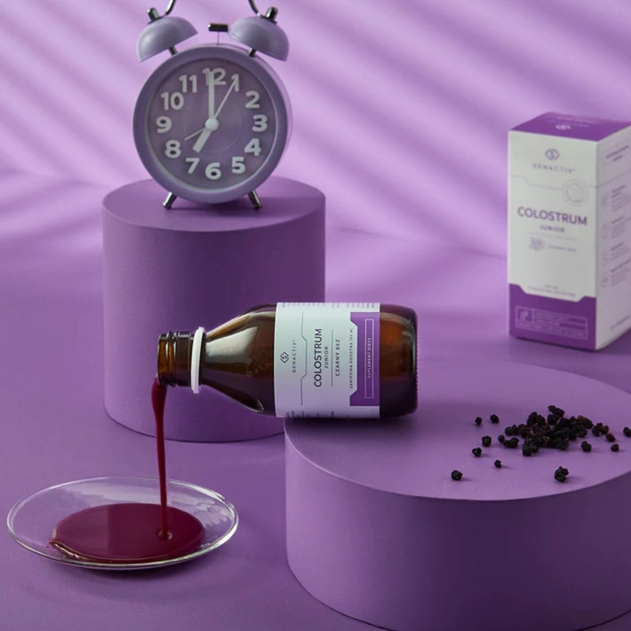 Genactiv Colostrum Junior is a dietary supplement in the form of a suspension. It contains colostrum bovinum. With the addition of extracts from elderberry and wild rose, rich in vitamin C. The product provides 500 mg of colostrum and 12 mg of vitamin C in 1 serving.