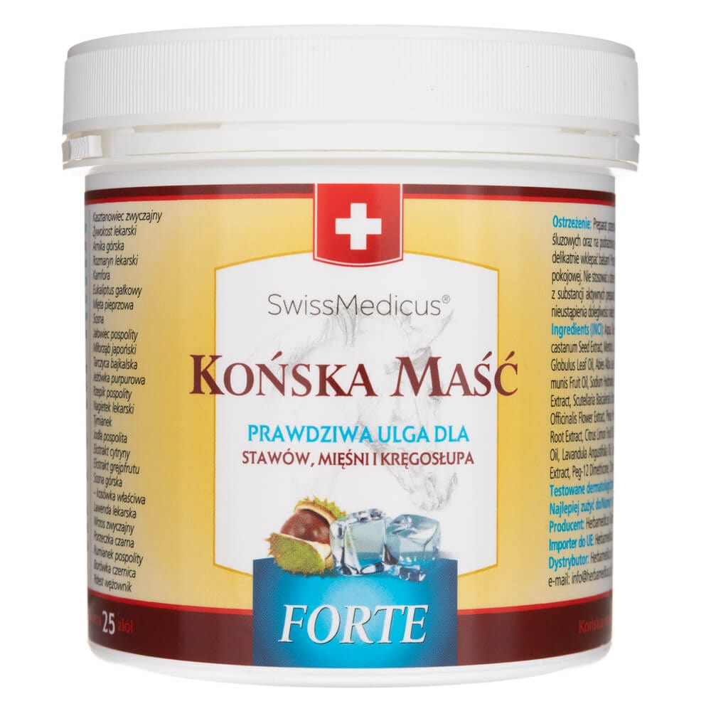 This is an enhanced version of a unique balm made from 25 herbs. SwissGel Forte cooling is made according to a traditional Swiss recipe. It contains chestnut fruits and flowers, which have been proven to be effective against varicose veins.