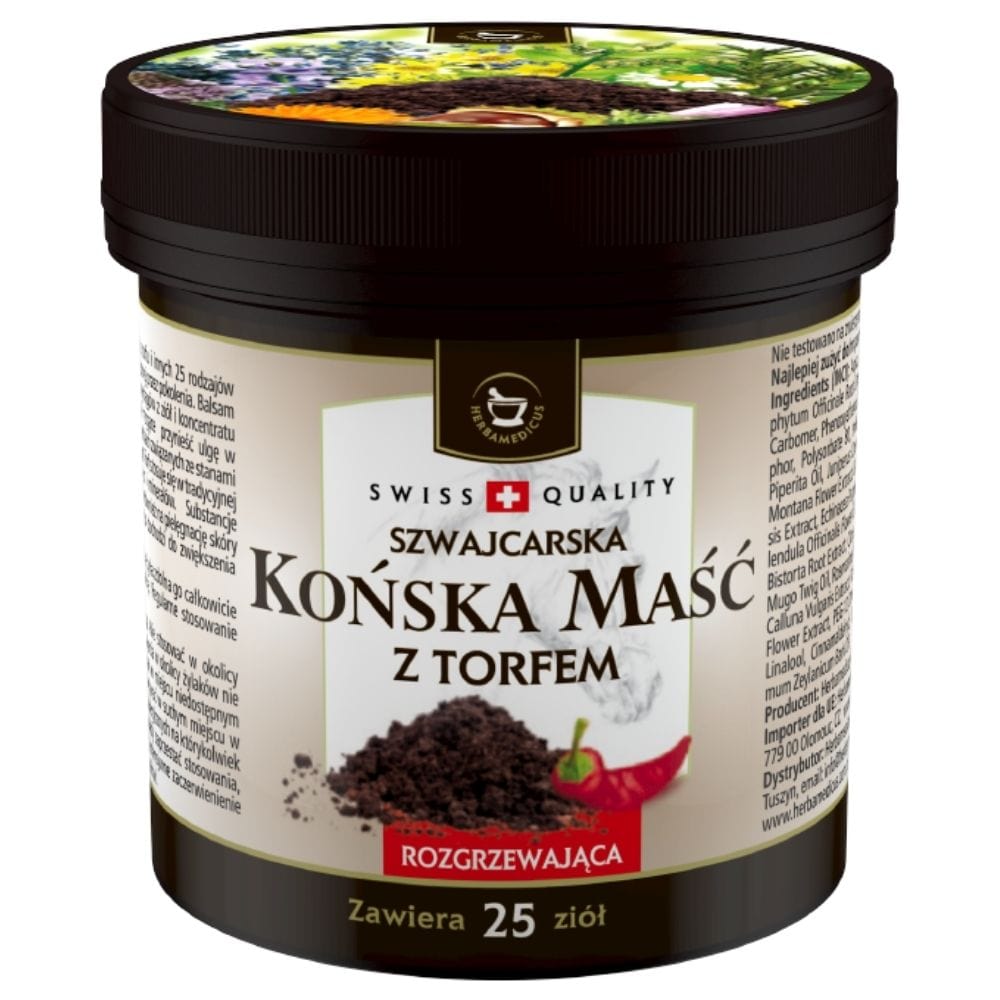 Herbamedicus Horse Ointment with Peat Warming is a unique herbal balm created from high quality peat and 25 herbal extracts. The formula based on a traditional recipe provides an intensive warming effect and effectively supports regeneration.
