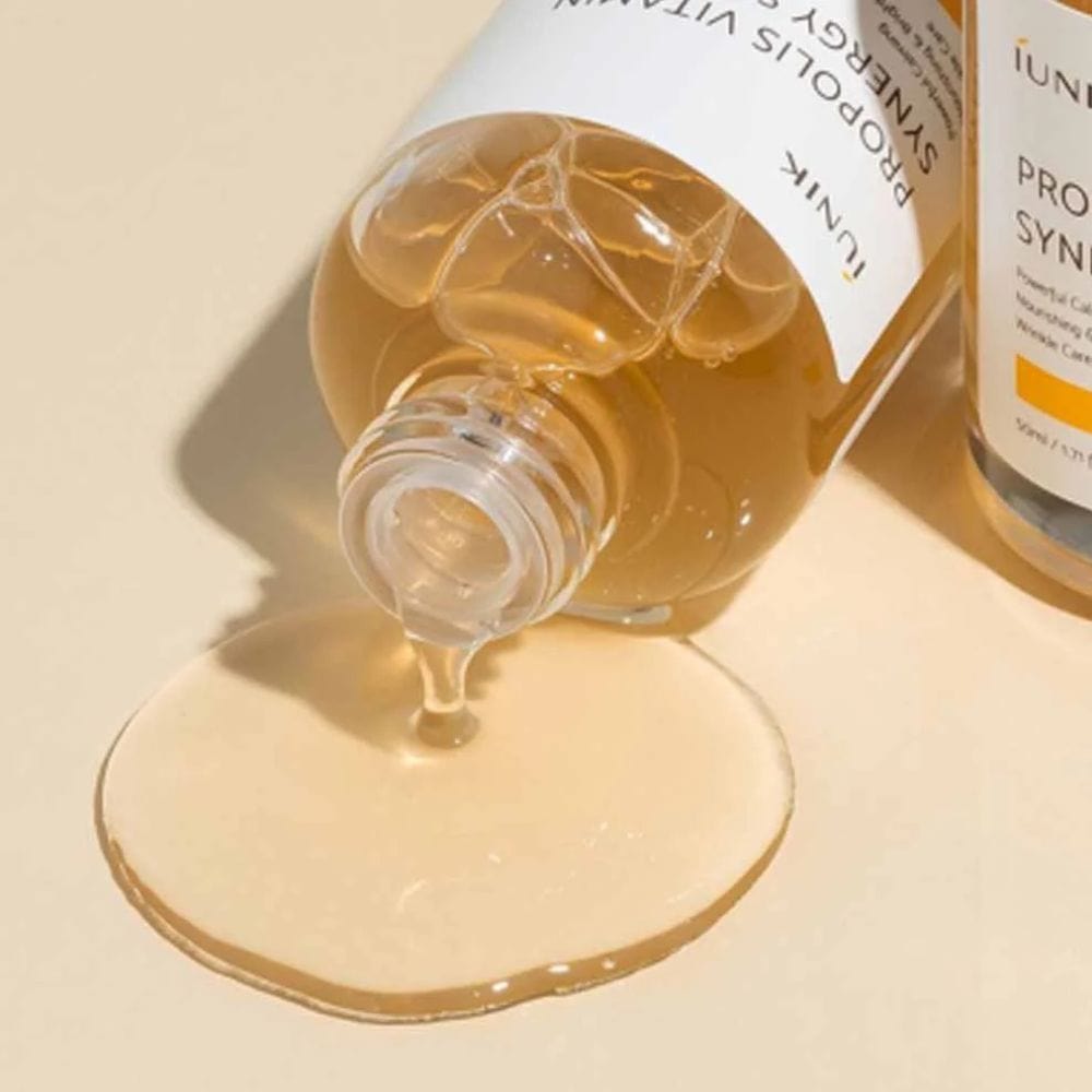 iUNIK Propolis Vitamin Synergy Serum is an innovative strengthening serum that utilizes the synergistic effects of propolis and sea buckthorn extracts. The formula contains high concentrations of active ingredients that comprehensively care for the condition of the skin—from strengthening the protective barrier to brightening and evening out the skin tone.