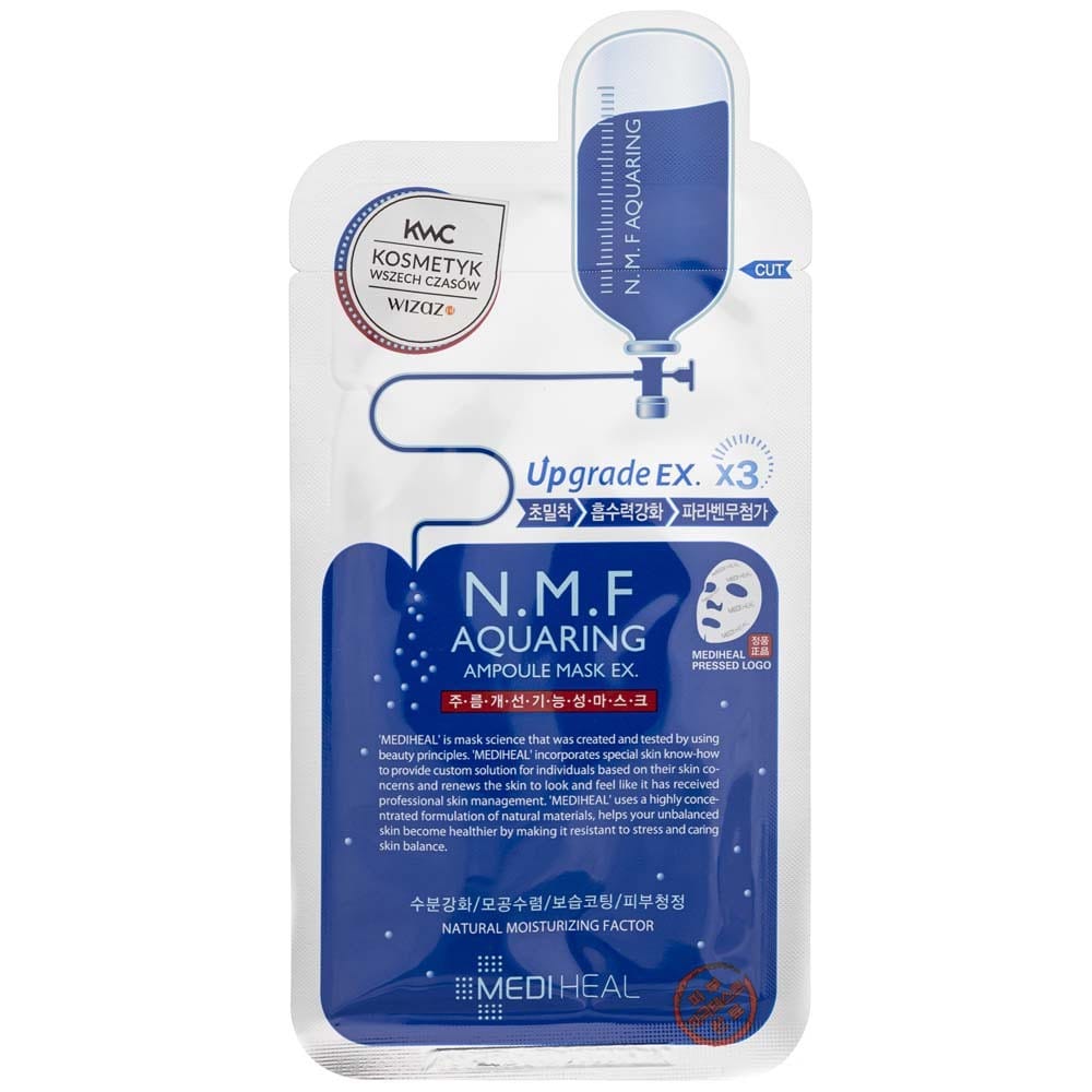 Mediheal N.M.F. Aquaring Ampoule Mask is an advanced sheet mask designed to deliver intense hydration and nourishment to the skin. N.M.F. (Natural Moisturizing Factor) is a complex of ingredients that occurs naturally in the skin and helps to keep it hydrated. The mask contains hyaluronic acid, ceramides and plant extracts, which work together to deeply hydrate the skin, improve its elasticity and strengthen its protective barrier.