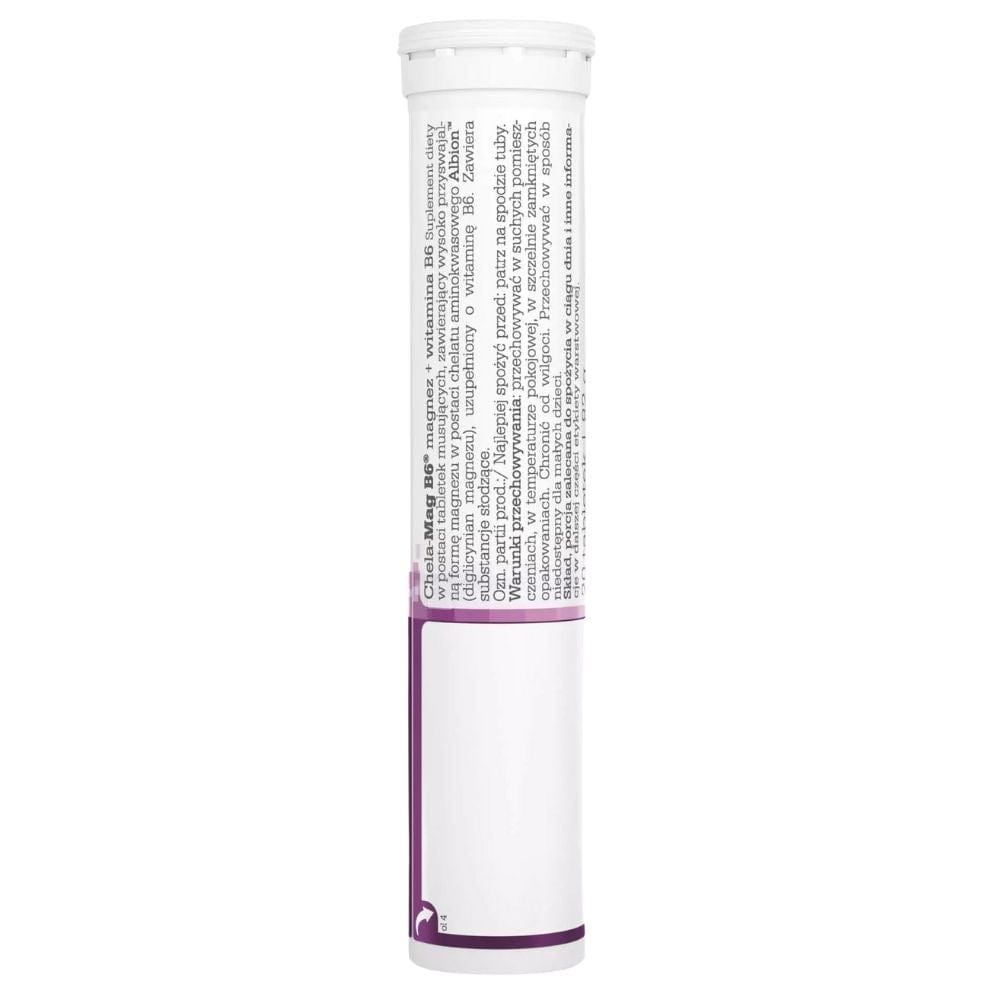 Olimp Chela-Mag B6® is a dietary supplement in orange-flavoured effervescent tablets. The product helps to cover the daily magnesium and vitamin B6 requirements, which support the proper functioning of the nervous system, muscles and work to reduce fatigue and tiredness. Provides 100 mg of magnesium in the highly-absorbable amino acid chelate form of Albion™ (magnesium diglycinate) and 2.1 mg of vitamin B6 per serving.