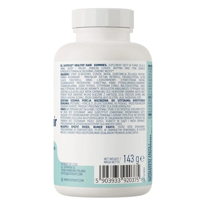 OstroVit NUTRISIE® Healthy Hair Gummies is a comprehensive dietary supplement that provides the body with 11 valuable ingredients, including vitamin D, folic acid and zinc. It is available in the form of gels with a delicious berry and raspberry flavour. It is a product created for people who care about a healthy and beautiful appearance.