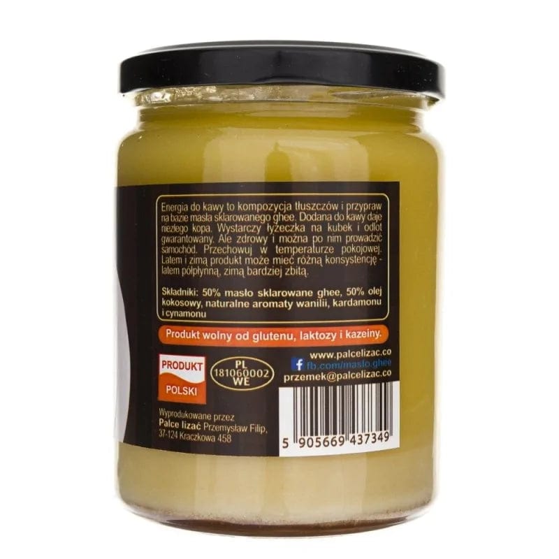 Coffee Energy is a composition based on clarified ghee butter with unrefined coconut oil, Indian cardamom and cinnamon and Madagascar vanilla stick, which will not only give your coffee an amazing flavour, but also a kick.