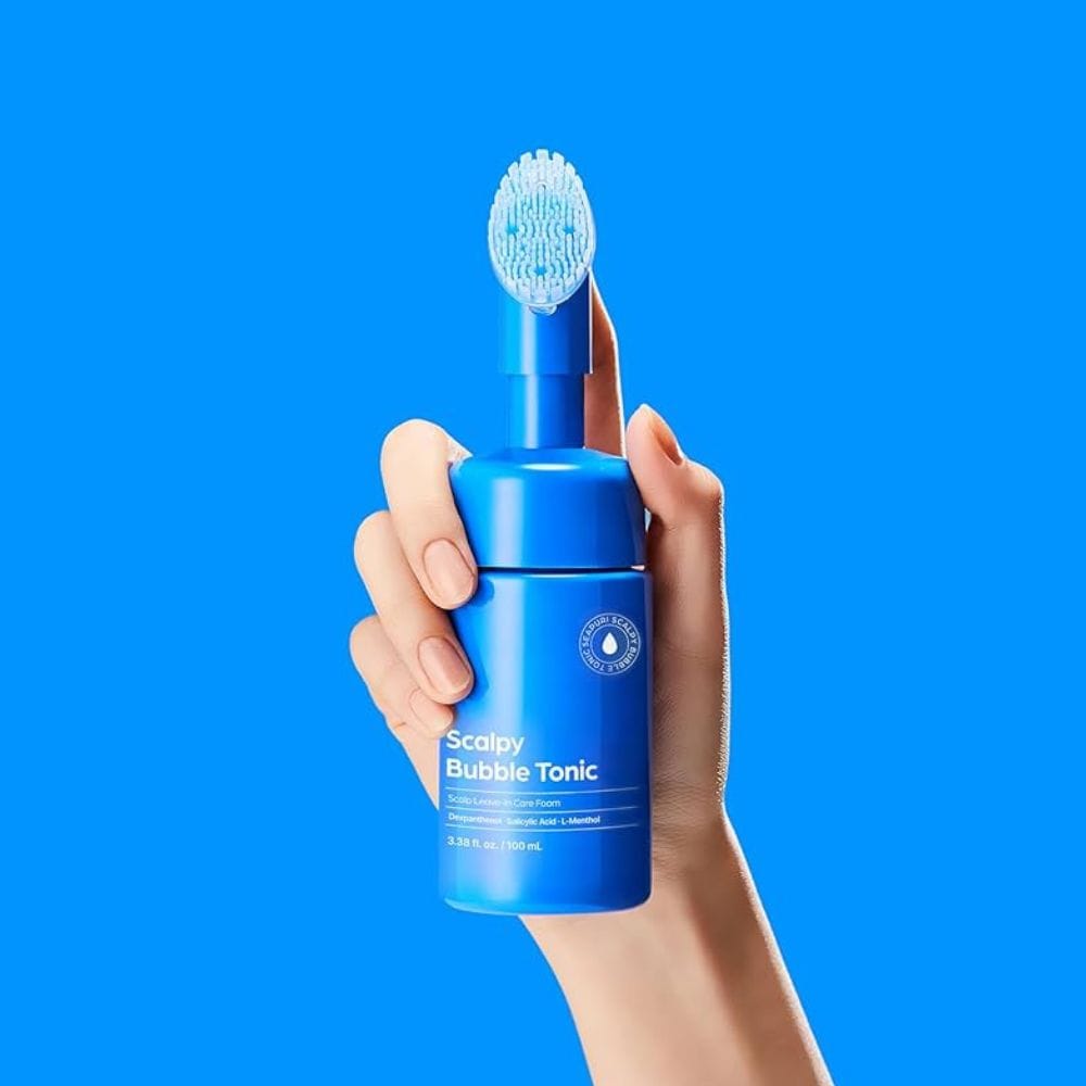 Seapuri Scalpy Bubble Anti-Dandruff Soothing Tonic is an innovative tonic with salicylic acid and piroctone olamine, which reduces hair loss by 75.1% after 4 weeks. A unique brush with 200 micro-bristles removes dandruff, cleanses hair follicles and delivers 22 amino acids directly to the scalp.