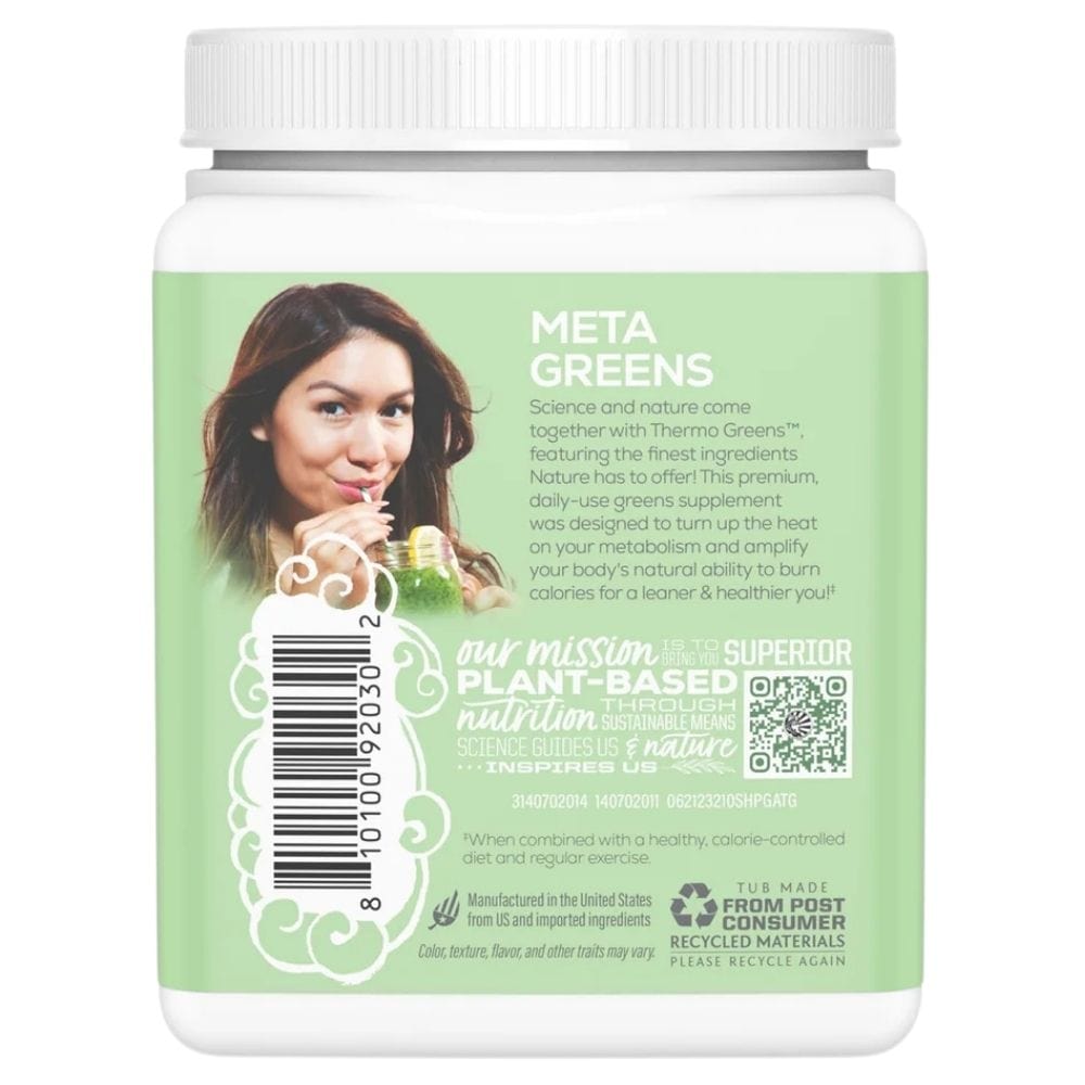 Sunwarrior SHAPE THERMO GREENS is a powdered dietary supplement containing a blend of 29 fruits, vegetables, and herbs. THERMO GREENS is designed to boost metabolism and support healthy body composition with an excellent thermogenic catalyst. A source of high-quality, clinically tested ingredients that provide antioxidant effects to fight free radicals and activate brown adipose tissue, enabling fat burning while nourishing the body with essential greens.