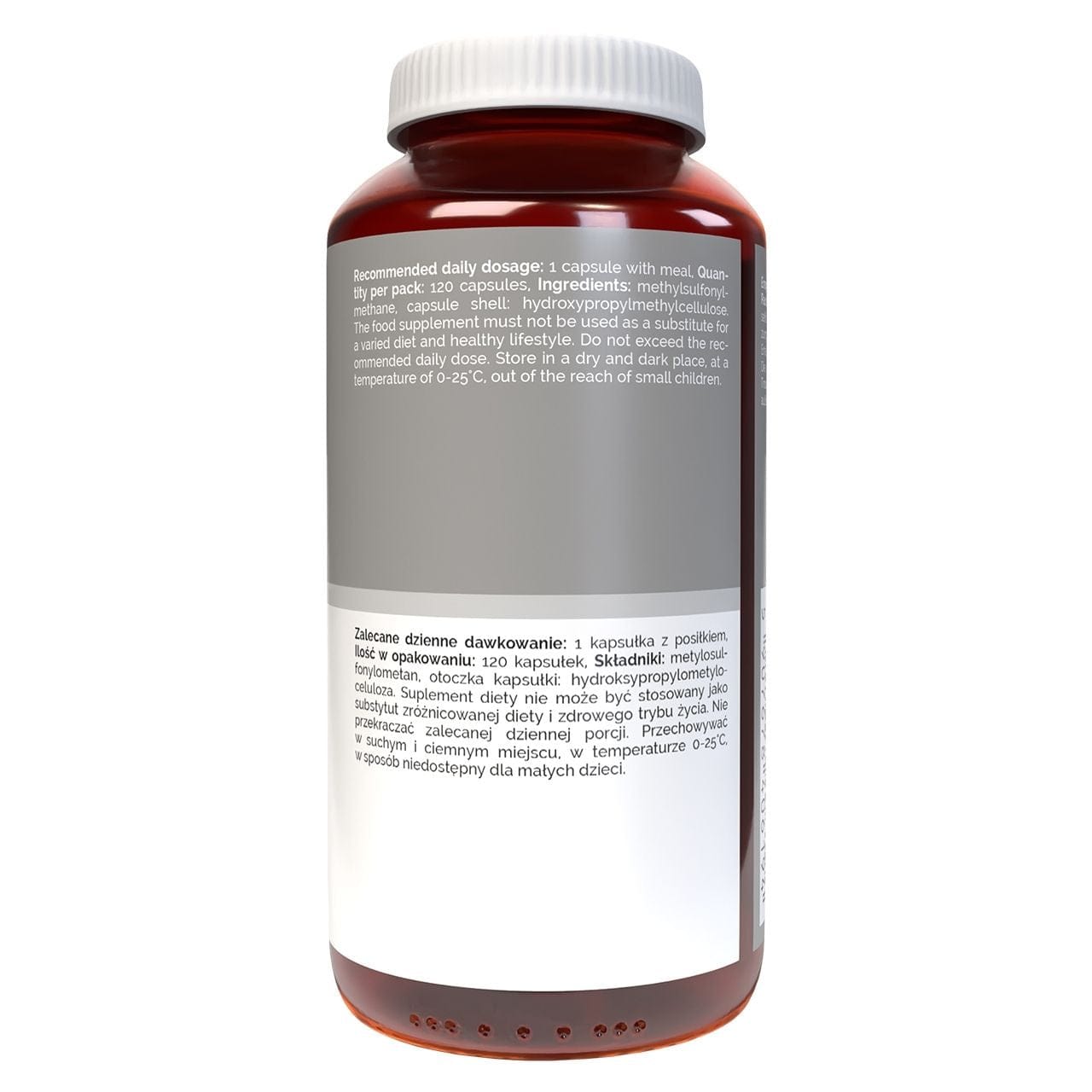 Vitaler's MSM (Organic Sulphur) 700 mg is a dietary supplement in capsule form containing 700 mg of methylsulfonylmethane (MSM) in each capsule. MSM is an organic sulphur compound found naturally in certain fruits and vegetables, among other foods. HPMC capsules suitable for vegetarians and vegans. 120 capsules per pack. Does not contain: preservatives, flavourings, colourings, added sugar.