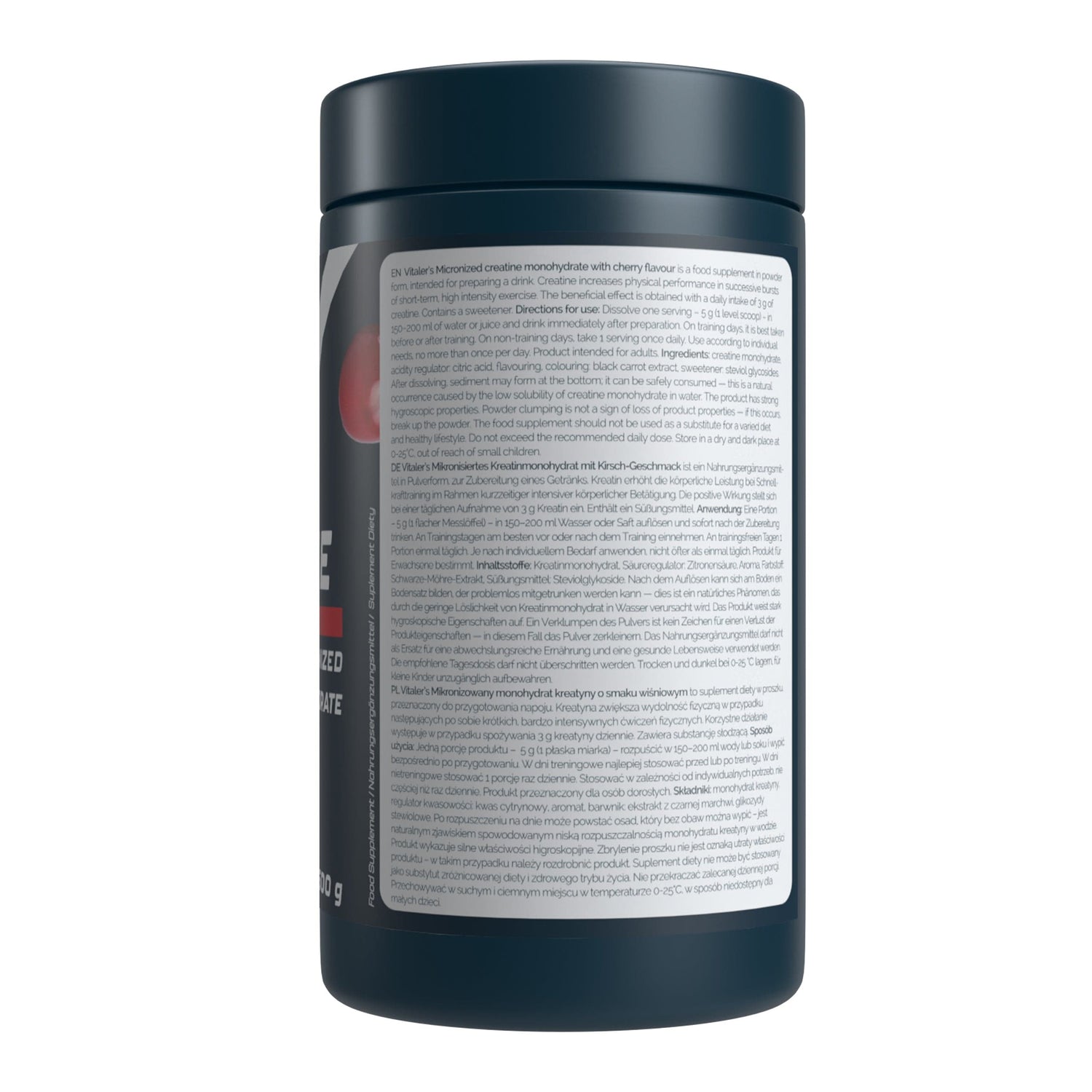 Vitaler's Creatine monohydrate is a high-quality dietary supplement containing 100% pure creatine monohydrate. Creatine has excellent solubility due to its 200 mesh micronisation.